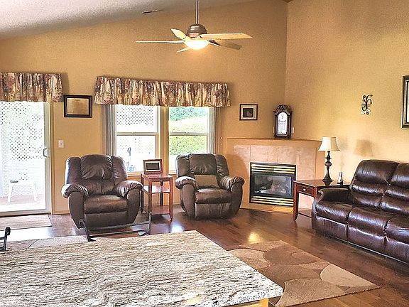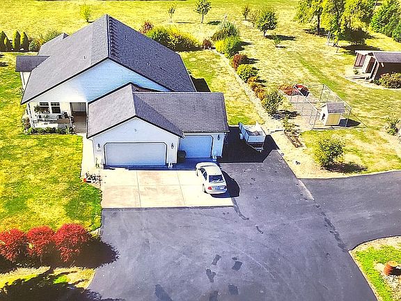 Quiet country living on 2 acres. 3 large bedrooms, 3 full bathrooms, vaulted ceilings, propane fireplace, new granite kitchen countertops. Also on property is a 40x48 shop with electric. Shop is split with insulated and heated workshop area. Storage in loft. Beautiful landscape with fruit trees. Second garden shed on property. Extra large paved parking area. Extra large covered back patio. 800 sq ft 3 car garage. 1920 sqft shop.