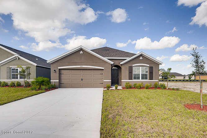 Brand New Home in the heart of Palm Bay! Close to Parks, Schools, and Shopping! Large Bedrooms and living spaces. Projected to be completed by March 2018! Price includes stainless steel appliances, crown molding on your kitchen cabinets, 2” Faux Wood blinds, and a walk-in pantry! Tile in all wet areas, with carpet in the living areas and bedrooms. Trussed roof covered porch great for entertaining! Come make this home your own before it’s gone! ***Photos are not of actual home. The photos are of the same floor plan. Exterior color, carpet, countertops, cabinets, and tile may differ.