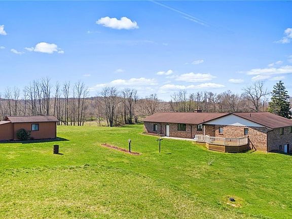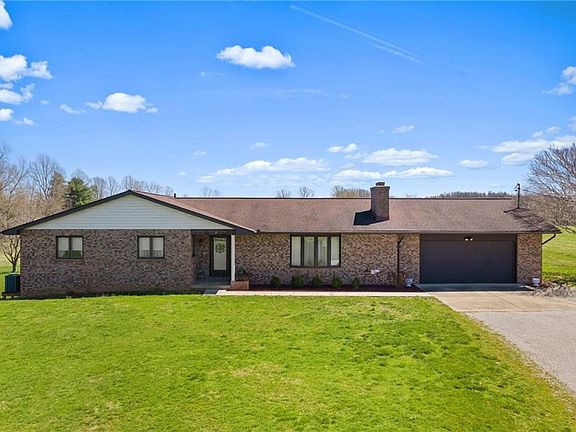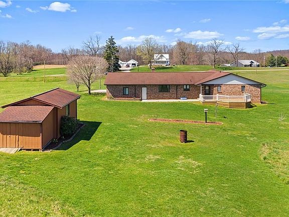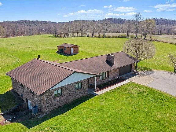 Amazing pride of ownership in this 3 bed 2-1/2 bath full brick home situated on 18.37 beautiful rolling to flat manicured acres. Huge pole barn open to do as you please....animals, cars, workshop or equipment shed. The back pasture area of the property is fenced with a high tensile fence and has been mowed and clear of brush. Just bring your livestock and put them out. There is also a woodshop directly behind the house. The house also offers a newly built deck overlooking the land, full, unfinished walk-out basement for storage or finish to your liking. House has been immaculately maintained but may need some updates to your liking. Pole barn measures 50x54 and there is a continuous stream that runs through the pasture for watering livestock.