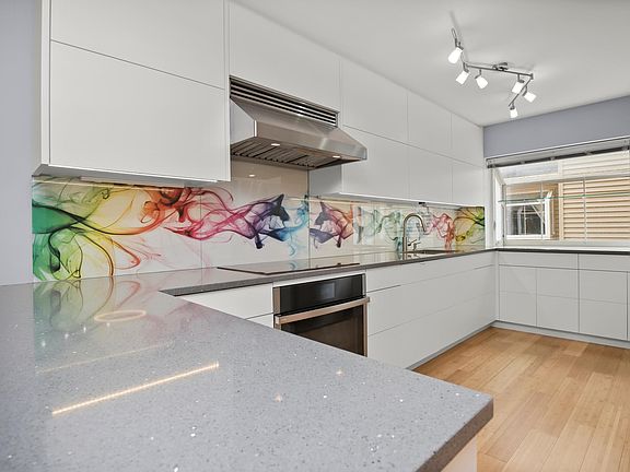 Completely remodeled, contemporary, bright and spacious, 2 bedroom and 1 and 1/2 bath townhouse style apartment in Glenbrook area. The apartment is outfitted with Energy Star rated appliances, LED light fixtures, and two zone heating/cooling system controlled independently by two Nest thermostats to help you keep energy bill low. Open floor plan lower level features modern kitchen with Wi-Fi smart enabled appliances and living room that includes floating cabinets, Bose surround system, TV, and electric fireplace. Master bedroom on the upper level offers plenty of storage space within two wall to wall closets and includes another TV. Bathroom features air jet bath tub and floor heat. Also on the upper level are guest bedroom and laundry room. Attic offers additional storage. Parking is available in attached one car garage space and outside. 15'x7' storage room is conveniently located right off the garage. Walk to train, restaurants, cafes, shops, and more!