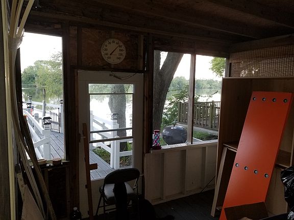 Riverfront modular home in Rock River Estates. 3 bd 2 baths. Stainless steel appliances in the kitchen (2017). Large laundry room/mud room with large capacity whirlpool washer and dryer (2017). New paint and flooring throughout. (2017). Nice two level deck with stairs to river. Great views and fishing. Bring your boat! Giant soaking bathtub, walk in closets, gas fireplace with remote start, 2 new clear glass skylights (2019), 4 season room, screened in porch, 2 showers, large room sizes, open concept living/dining/kitchen, vaulted ceilings. Year round community you can live in or use as a weekend/summer home. HOA includes water and garbage.