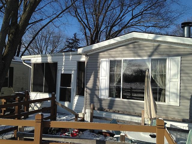 2002 Dutch double wide mobile home on a river lot. Lot rent is $295/month, and includes water, sewer and garbage removal. Large living room with attached 4 season family room with gas fireplace. Family room overlooks the Rock River. Attached is a 10'' x 15'' screened porch with a 2 level deck leading down to the river. Lovely master bath with walk-in closet and garden tub. Lot rent is subject to park approval. Appliances not warranted. There is no sign on the property. Lot #26.