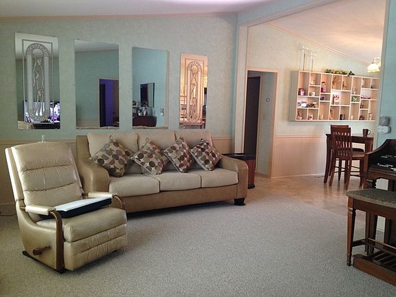 Stunning 3 bedroom, 2 bathroom in incredibly well cared double wide mobile home in Rock River Estates. Each bedroom has a large walk-in closet, kitchen has ceramic tile counters and back splash. Ample storage throughout including inside the mudroom. Sliding doors lead to a deck. Home has large shed in backyard for more storage. Lot rent is $260 and subject to park approval.