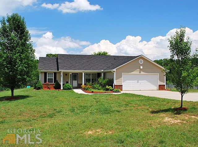 This 3 bedroom 2 bath home features separate dining room, spacious family room with tile surround fireplace, kitchen offers updated appliances and light and bright breakfast room, split bedroom plan, master suite with recently renovated master bath and walk in closet, nice sized secondary bedrooms, large laundry room with abundant cabinet storage and 2 car garage. Additional updated features include recessed lighting, exterior front door and laminate hardwood flooring Home is located on wonderful 1.6 acre fenced lot with extended patio area - great for entertaining, and large outbuilding. This home is located in a quiet rural setting yet only 7 miles from downtown Newnan, 9 miles from Ashley Park and easy access to I85.