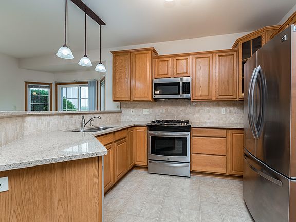 Enjoy Condo Living at its best in this desirable 1st floor unit featuring 9'ceilings boasting serene vistas & gorgeous sunsets from almost every room! Pride of Ownership shines throughout ! Open Concept Style gem features 2br/2ba/2.5 car attached garage plus full basement. Enter the spacious Great Room perfect for entertaining family/friends or just relaxing. Kitchen offers Granite Countertops, Stylish Tile Backsplash,Stainless Appliances, high rise snack bar and loads of cabinetry plus patio doors leading to a private patio overlooking a peaceful pond & grass pastures. Master Suite with WIC & private bath w/walk-in shower stall. 1st floor laundry with washer and dryer & much more! Great Location! Don't Miss out on this One!