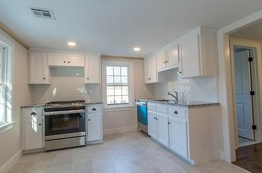 This 3 or 4 bedroom unit is located on the 2nd and 3rd floors. This unit has been recently renovated and updated with hardwood floors throughout the first level and new wall-to-wall carpet on the second level of unit. New appliances, granite countertops in the kitchen and a new washer and dryer. Located minutes from shopping, restaurants and commuter rail. Easy commute to schools, library and parks. Water, snow removal and landscaping included in rent. Unit #1 has 3 bedrooms and can be found at MLS#72576840 . Both units can be rented together - contact list agent for more details.