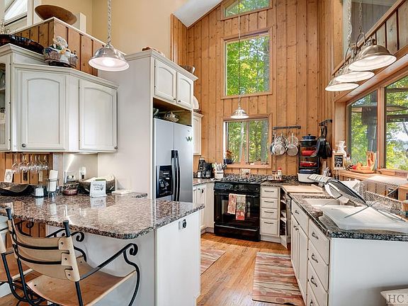 Perched at a cool elevation of 3700 feet, this residence sits at the end of the cul-de-sac high on a knoll overlooking beautiful Lake Glenville & the mountains beyond. Easy access driveway that connects to circular entrance back onto road leading to home so no backing down a driveway. This home is being sold furnished with few exceptions and has been lovingly remodeled by the current owners including the kitchen, baths, master suite, a new screened in porch and painted inside and out. Dine or just relax while taking in the views. Wraparound deck is open and gated perfect for pets or young children. The home is light & bright with wood floors throughout and wood beams accents in great room giving it warmth. The great room has a cozy wood burning fireplace and built in shelves. Vaulted ceilings grace the great room, kitchen and the master suite. There is a spacious family room with fireplace, dining area and a walkout concrete patio. Each bedroom is located on a different level for privacy with plenty of space to add additional sleeping. The double garage features a work bench, a loft for storage and sink. This neighborhood is secure and gated but informal geared towards enjoying the peaceful mountains. There is lake access available at the public boat access and swimming area. Plenty of gourmet and family style restaurants await you in nearby Cashiers with boutique shopping or take a short drive to Highlands for more great restaurants and shopping. This area is known for its great hiking and golf so don't wait! Call today to schedule your private showing.