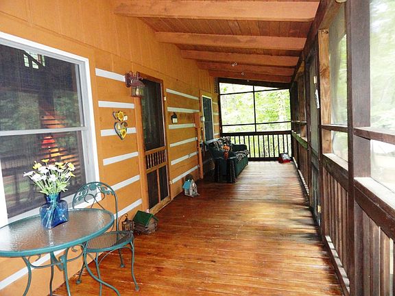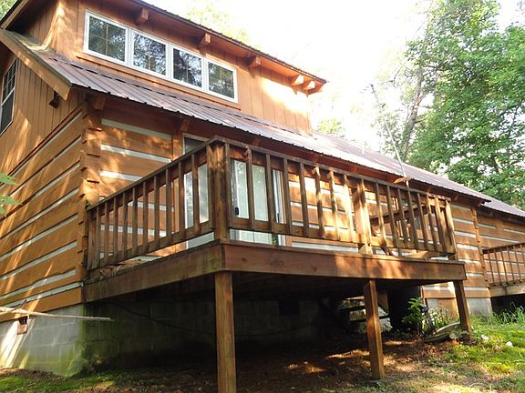 Enjoy all the solitude and relaxation the mountains have to offer right here at this comfortable 2BR/1.5BA log cabin nestled on 13.2 wooded acres on Towee Mt. At first approach you'll immediately feel welcomed by the wraparound deck - the perfect spot for having coffee or reading a book. When you're feeling more adventurous, enjoy the almost endless outdoor activities in the Cherokee National Forest and Hiwassee River. The cabin's interior features a great room that opens out onto the deck that makes it perfect for quiet meals or for entertaining. You'll love the rustic hardwood floors throughout the cabin and the open-beam ceilings. One larger bedroom and full bath are on the main level; the bedroom has space for sleeping as well as for a sitting area and opens onto a small private deck. Upstairs is a bedroom with an adjoining half bath. If a fireplace is on your wish list, a thick concrete pad is in place just for that addition. The outbuilding has power and a wood stove and has most recently served as a workshop. Located at the end of a road in the Towee community, access is either through the subdivision entrance OR this property has its own very convenient private entrance off Fingerboard Road. The private well-water system throughout the development is tested annually by the state. The nominal yearly HOA fee pays for water system and road maintenance. Light, reasonable restrictions protect property values. Currently no cell service; landline phone service available. Appliances stay but dishwasher does not work. Cabin will need some repair due to termite damage but termite treatment has been done; sold 'as is'; priced accordingly. Towee is a favorite area for its privacy but also for its proximity to outdoor activities. Whether you are looking for the perfect getaway or primary residence, don't miss visiting this attractive, serene property.