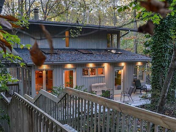bring back up contracts on this one of a kind home. Modernist home on 5 acres hardwood forest by J P Goforth. Recent kitchen by acclaimed Georgia Bizios.Glorious wall of windows floods the home with light and views of the forest.Corner windows. Angled roof line is mirrored in the wrap around deck. Main level BR, w/outside entrance is easy home office.Intimate spaces plus room for large gatherings. Huge workshop.Well maintained. 2011 HVAC, new paint,2001 commercial rubber roof. Shingle roof 2003.