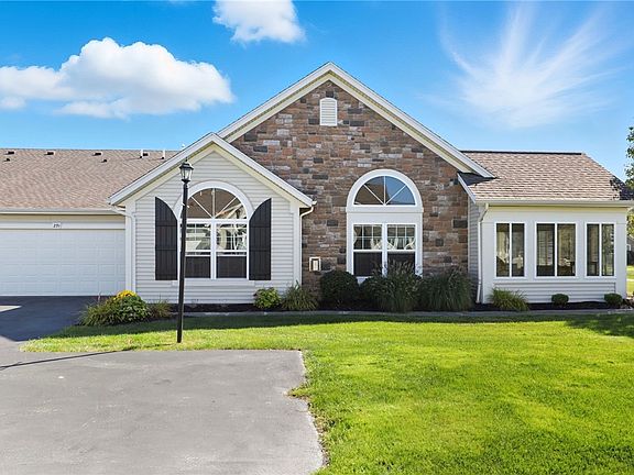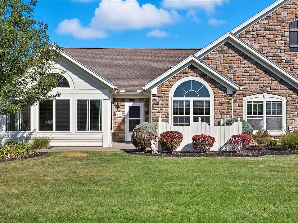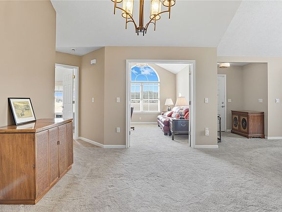 Discover the rare charm of this end-unit Canterbury model, perfectly positioned on a prime pond-front lot at the end of a peaceful cul-de-sac. Step inside and feel the warmth of sun-filled spaces, soaring cathedral ceilings, and a seamless ranch-style layout designed for both comfort and elegance. The cook’s kitchen, complete with a cozy coffee bar, invites you to start your mornings in style, while the open dining and living areas make every gathering feel special. Retreat to the primary suite, featuring a generous walk-in closet and spa-like step-in shower. A French door entry leads to a versatile den—ideal as a study, reading nook, or third bedroom. Outside, your private patio becomes a serene sanctuary with calming water views. Life here is enriched by community amenities including a sparkling pool and a welcoming clubhouse with a full kitchen—perfect for celebrating milestones with friends, or playing weekly euchre with your neighbors. This is more than a home—it’s the lifestyle you’ve been waiting for.