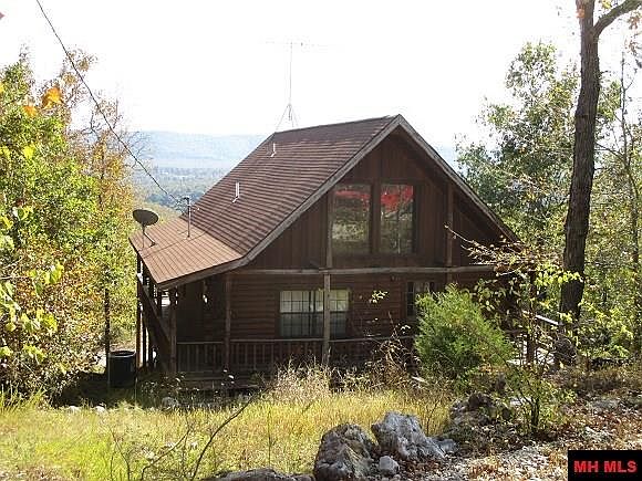 Log Home close to White River & Crooked Creek. Great View! In need of some TLC, New Central Heat. 2 Bedroom/ 2 Bath on 5.5 Acres. 2 Car detached wood garage. 24.1 x 8.5 Basement. Covered Porch around whole home.