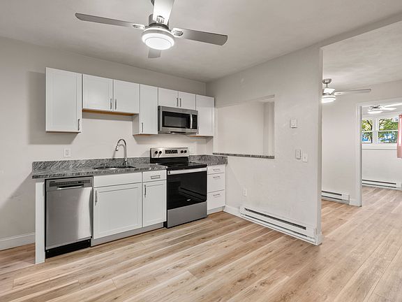 Charming, fully renovated 2 bedroom apartment in a classic brick brownstone in East Boston! Features include a modern kitchen with white cabinets, stainless steel appliances, quartz countertops, and new hardwood flooring throughout. Freshly painted interior with high ceilings and large, sunlit bedrooms. In-unit laundry adds convenience. Step outside to your private patio with exclusive access perfect for relaxing or entertaining. Prime location just a short walk to the subway, grocery store, water taxis, and local hotspots like Angela's Cafe, Rino's, Reelhouse and Tall Ship. Enjoy scenic strolls along Boston Harbor or unwind at Constitution Beach and the Boston Sailing Center all just moments away! Renter is responsible for gas and electric.