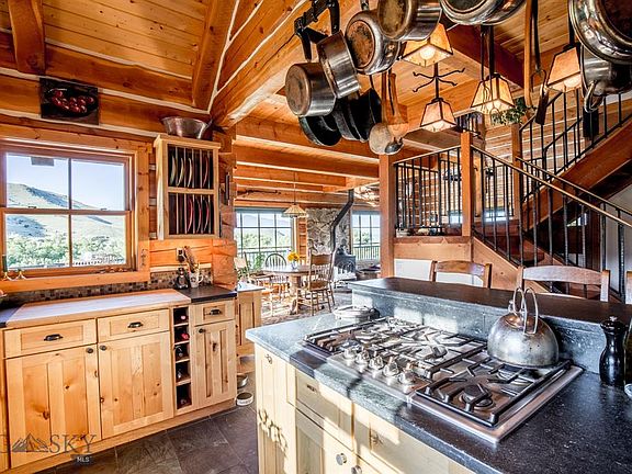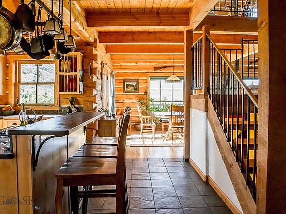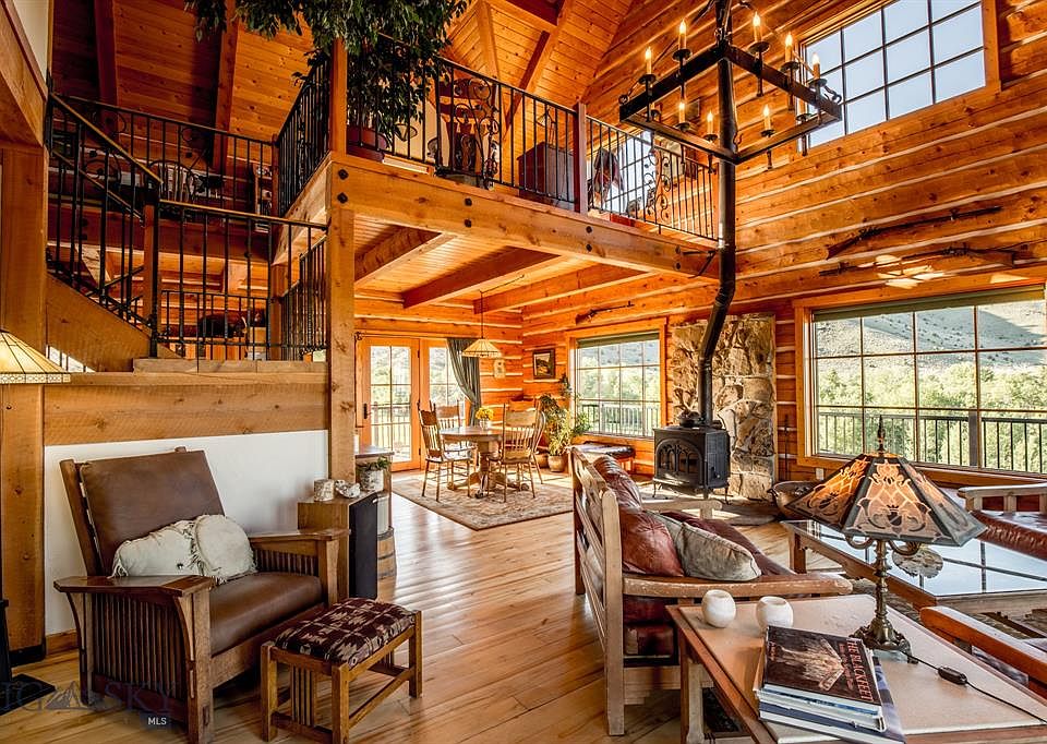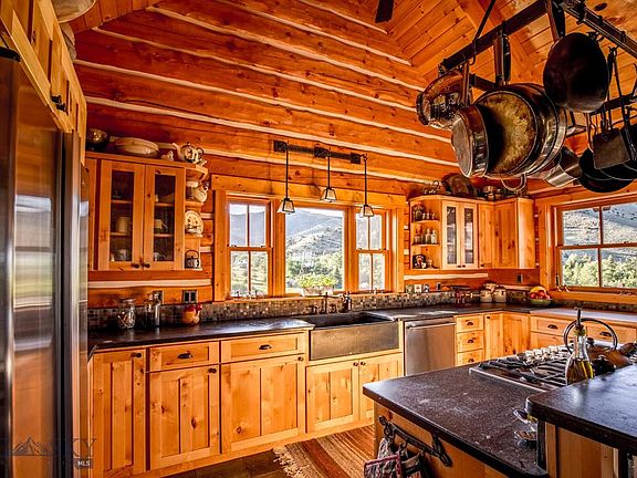 Dream of living an authentic Western lifestyle in a Montana thriving small town? This milled, then hand adzed, dove tailed square log home evokes the spirit of the West and it's history. It is situated on 15.732 acres with approximately 1000' of Mill Creek on the south border and BLM leading to national forest on the north border. The lush hayfield below and the dramatic views of 5 mountain ranges make this magical spot, one of a kind. This extraordinary 3BR/3BA home has custom iron work throughout including chandeliers, railings, curtain rods, hooks and more. The kitchen features Jenn-Air and Bosch appliances, soapstone counter tops and farm sink. The bright, cozy dining and living rooms open decks to enjoy the views. Property features include water rights, a detached 2 car garage, a log 24x24 shop and a greenhouse. Many recreational opportunities are nearby and Mill Creek Road leads to beautiful Branom Lakes. Quality workmanship, hand forged iron details, no covenants, and wooden picket fence that surrounds a yard with many perennial plants are just a few of the homestead touches. Featured in the Montana Standard. https://mtstandard.com/lifestyles/sheridan-home-is-labor-of-love/article_6a7442f4-3c04-523a-b276-9d0eb99ee9f3.html?save_asset=6a7442f4-3c04-523a-b276-9d0eb99ee9f3#