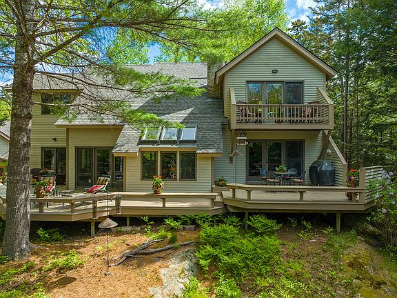 This stunning contemporary home is set on a very private 11-acre parcel, just a short distance from Camden Village and Megunticook Lake. It is surrounded by conservation land and large tracts of undeveloped property with over 1000' of frontage on Trout Brook. The property features a combination of naturalized and mature landscaping, offering a relaxing feeling which can be enjoyed from the expansive, multi-level decks accessed from all main floor living spaces. The home has a cook's kitchen and three beautiful fireplaces, including one in the primary bedroom suite, which also has a separate dressing room. There is a first-floor guest suite, a sauna, and an outdoor jacuzzi overlooking the gardens. The home also includes a two-car attached garage and a whole-house generator. Enjoy sunsets and mountain views in this light-filled home filled with exceptional detailing and amenities. Truly a beautiful home in a tranquil setting. Currently used as a four-bedroom home with a three-bedroom septic system.