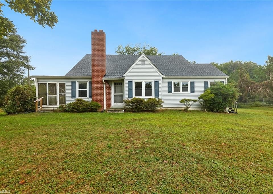 Great renovation possibilities! Country Cape Cod with expansion upstairs. Unique in that house has 2 full baths on the main floor! *Upper story has 2 bedrooms and 500 sq feet but no heat or AC. Living room and dining room have nice knotty pine paneling. Really nice side screened porch 28x8. 1-car detached garage with carport attached. Termite bond. Walk into Wallburg. Adjacent to Wallburg Elementary School and athletic fields; across the street from Wallburg Pool and Recreation Center.