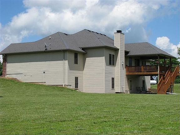 Upscale, walk-out basement home at the end of a cul-de-sac on 5 acres with 35x48 outbuilding with concrete floor, electric & RV overhead door! This wonderful home has many new upgrades including top of the line Pella doors and windows with lifetime warranty, just added within the last 5 years, new electric wiring throughout house (2020), new Septic System, new neutral pain. Walk inside to see the formal dining room with its graceful arches and is open to the HUGE living room with a beautiful gas fireplace. The wonderful kitchen has beautiful cabinets, granite counters and new Whirlpool Energy-Star appliances which all stay! The breakfast area overlooks the covered back deck and surrounding countryside. The full master suite features beautiful tray ceiling, full bath with dual sink vanity, corner jetted tub, wk-in shower and large wk-in closet. Downstairs you'll find a massive family room with surround sound, pellet stove insert, large wet bar area, storm shelter, 2 bedrooms, storage and full bath. Fenced and cross-fenced for horses! Call today!