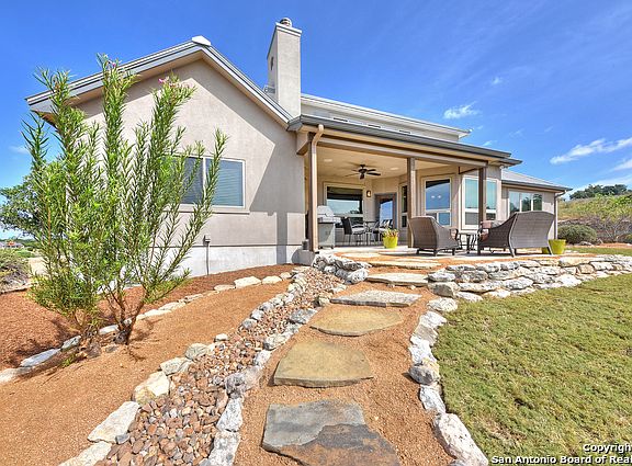 Fantastic Canyon Lake & Hill Country views in tranquil Mystic Shores community in Comal ISD. Downstairs open floor plan w/3 Bedrooms, 1 Study/Bedroom, 2 Baths, Breakfast Nook, Dining Room, Living Room, & 2 Car Garage. Huge Bonus Room & 1/2 Bath upstairs. Wood-grained porcelain floors, granite countertops, all stainless steel Kitchen appliances. New roof, gutters & exterior paint in 2017. Tankless water heater & security system. Entertainer's dream w/gorgeous views from covered & flagstone back patios.