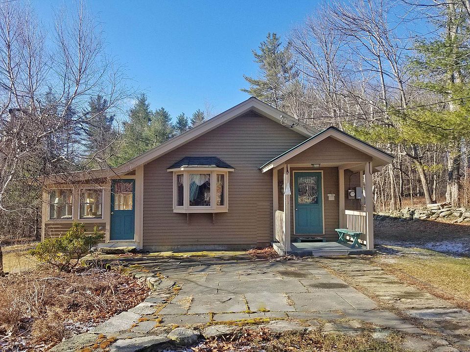 This charming country cottage is located on desirable Newfane Hill and provides 5 acres of open meadow, mixed woodland, fenced garden space, beautiful stone walls & walkways and a bluestone patio. The house is delightful, sunny and open concept with Formal Entry/Mudroom (via a covered porch) with slate flooring and 3 spacious closets; Great Room with Living Area with wide board floors, bay window and custom Oak built-in cabinets and shelving; Kitchen/Dining with Pine flooring, ceiling fan and handsome Kitchen cabinets and custom built-ins; To the front of the house via double sliders is a large Sun Room/Bedroom with 14 windows overlooking the meadow. There is a Primary Bedroom with 2 closets, ceiling fan, wide Pine flooring and large windows; The newer Bath features oversized walk-in tiled shower, granite topped vanity and washer/dryer closet. Adding to the value and appeal is the detached heated garage with electric overhead door, work shop area and 2 ample storage rooms. A very special listing! Delayed showings until Saturday, 4/9/22