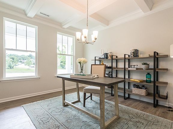 This Palmer has it all! Featuring a formal dining room with a coffered ceiling, a butler's pantry, a gourmet kitchen with microwave/oven wall combination, and a vented gourmet hood. Huge great room open to breakfast area and kitchen. Large primary suite with tray ceiling and 5' tiled walk-in shower in the primary bath. Let's not forget the pet pad for our furry companions! There is a place for everyone in the Palmer! The kitchen has white cabinets with "Et Noir" quartz countertops and a beautiful 2x8 white subway tile backsplash. The luxury vinyl plank flooring flows throughout the main floor. The hardwood stairs lead you to the second floor which features three additional bedrooms and the primary suite. The laundry room connects to the primary closet making the the location functional and the chore, easy!! Ask about our $20,000 incentive! Photos are representative. Home has not started construction yet.