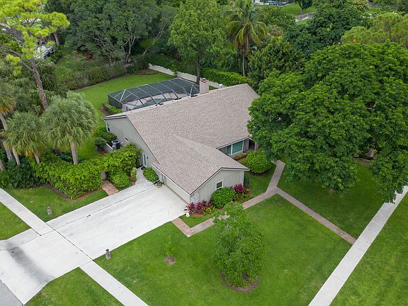 Located in the heart of Wellington, this charming 2-bedroom 2-bathroom home sits on a half-acre corner lot and has no HOA. There is an attached, 1 bedroom 1 bathroom guest apartment with a private entrance - easily move in and rent this for season! The back yard was recently fenced in (2021), and features a covered, screened-in patio with a pool and spa.. Inside, you will find vaulted ceilings, a wood burning fireplace and a large kitchen with charming breakfast nook. A 10,000 KW generator is included and runs most of house. All windows are impact, the roof is brand new (2023), newer pool heater and pool tile, and both AC units are 4 years old. A truly stunning home you need to see!