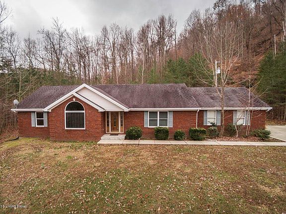 Welcome Home to this "One of a Kind Find" ~ Spacious Ranch offering 1700 Sq Ft w/3 Bedrooms & 2 Full Baths featuring an Attached 2.5 Car Side Entry Garage & Large Outbuilding w/220 Electric and a Concrete Floor ~ Nestled on 4.8 Acres just MINUTES from I-65 w/Scenic Views of Bernheim Forest~ Vaulted Great Room offers a Cozy Fireplace that Opens to the Dining & Kitchen Area ~ Kitchen features an Abundance of Cabinetry & Counter Top Space that adjoins the Dining Area that Walks Out to a Large Deck surrounded by Nature ~ Huge Master Suite w/Private Full Bath including a Spa Tub & Stand Up Shower ~ Mud/Laundry Room leads to the Garage ~ Other Amenities & Features: Newer Paint & Carpet Throughout, Security System w/Cameras & Much More ~ Don't Let This One Pass you By!