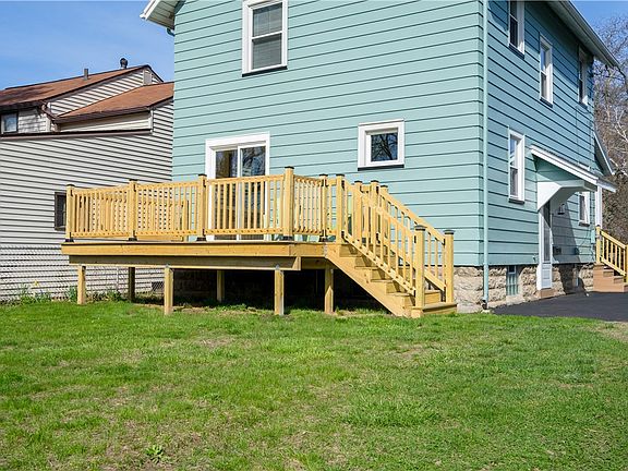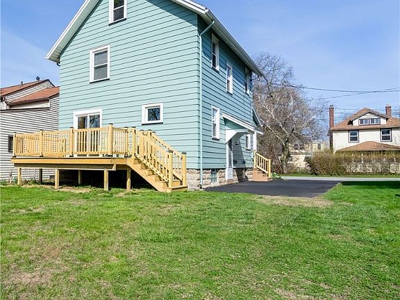 Impressive! Inside & out, this home has been meticulously renovated! Freshly painted interior & entire aluminum exterior!! Front enclosed & insulated porch (173 sq.ft) features new windows, flooring & shiplap detail !New main entry door into LR, has new Lifeproof flooring , that runs throughout the entire 1st floor! Fireplace in LR adds original charm! Spacious DR has a new 5' sliding glass door leading to the new 10x16 deck & private rear yard ! Eat in Kitchen w/all new white cabinetry & new stove, dishwasher & microwave! 2nd fl: 3 bedrooms w/Lifeproof flooring, , new plugs & switches, plus refinished gumwood. Bathroom: new vanity, sink, toilet, added closet, new flooring. 3rd fl walk up attic is bonus (aprox. 300 sq.ft) space: new flooring, stair treads, paint. Beautiful natural gum wood and moldings ! Deep rear yard that's been freshly mulched & landscaped. Detached garage at rear of property, driveway topcoated w/5 yr sealant. Desirable prime location w/minutes to all conveniences, Seabreeze, Amusement Park & Lake Ontario!Detailed list of improvements attached! Delayed negotiations Tuesday 4/23 at 2pm ,Open house Frid (4/19) 4-6pm, Sat (4/20) & Sun (4/21) from 1-3 pm