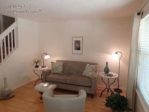 IMMACULATE! Bright Townhome, with wood floors on main level. Away from S. Boulder Rd. Energy Smart project with over $3K work done, as well as radon test, in 2013. Radon 1.4 plus or minus 0.2 pCi/L at that time. Numerous ceiling fans, 13 X 6 Trex private balcony off master bedroom upstairs. Easy living in coveted Louisville. SMOKE AND PET FREE! One assigned parking space. Loads of visitor parking!!