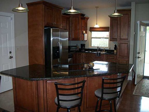 WOW! Beautiful waterfront home close to town. Excellent upgrades, fully furnished, 3 bedroom, 2 bath home with attached 2 car garage. Lakefront lot is 1.09 acres. Home has its own dock for sitting and relaxing or paddle around in your very own jon boat (included). Kitchen features granite counter tops and stainless steel appliances with custom cherry cabinets. Luxurious master bath includes a large soaking tub. Open floor plan is great for entertaining. French doors in the living room open up to the large deck which is perfect for those summer BBQ's. Also in the living room you can watch your very own flat screen TV while sitting in front of the electric fireplace (included). Furnishings tastefully done. Home has been meticulously maintained.