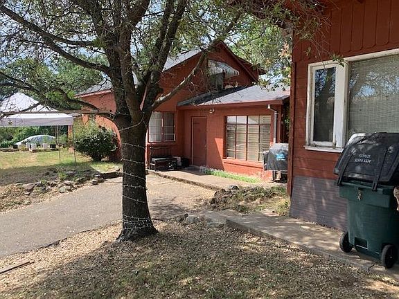 This home has 2 bedrooms located upstairs and 1 full bath. Downstairs is an office/possible 3rd bedroom with full bath. Family living combo with stove pellet fireplace with insert. Beautiful views out front window. Two separate driveways and covered parking. Also on lot is another building estimated 800sq ft can be used for storage/office space or potential rental. Per seller its zoned for commercial and residential