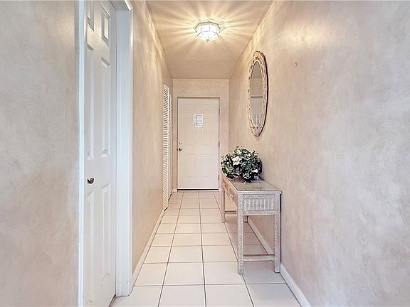 Step inside and be greeted by a long foyer that sets the tone for this bright and inviting space. To your right, a convenient laundry closet houses a newer washer and dryer, along with extra storage for cleaning essentials. As you continue, the condo opens into a spacious living area featuring a mix of tile and carpet flooring, abundant natural light, and an open-concept design that maximizes both comfort and functionality. For added protection and peace of mind, the condo is equipped with automatic shutters, allowing you to secure your home with ease.