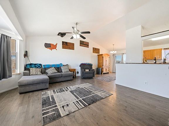 Escape the hustle and bustle to this tranquil oasis where the beauty of nature meets the comfort of home. Boasting 2.2 acres of fully fenced land, on a quiet cul-de-sac, this property offers the perfect setting for your equestrian lifestyle with zoning for horses and a horse trail conveniently located right behind the backyard. As you step inside, you'll be greeted by the warmth of a well-loved and cared for home. With 5 bedrooms and 3 bathrooms spread across 2,090 square feet of living space, there's plenty of room for your family to grow and thrive. Wake up to breathtaking sunrises and wind down with awe-inspiring sunsets, all framed by the majestic backdrop of mountain views. Recent upgrades ensure that this home not only charms with its natural beauty but also delights with modern conveniences. Indulge in your renovated master bath featuring a sleek new toilet, while the hall bath boasts trendy new tile and a convenient Bluetooth shower head. Your culinary adventures will be elevated in the kitchen, adorned with stylish new trim and a live edge installation, complemented by a new garbage disposal for added convenience. Outside, the landscaping beckons you to enjoy the tranquility of the landscaped backyard as the family enjoys the outdoors or relax on the newly stained deck while admiring the picturesque views. This is more than just a house ; it's a home where cherished memories are waiting to be made.