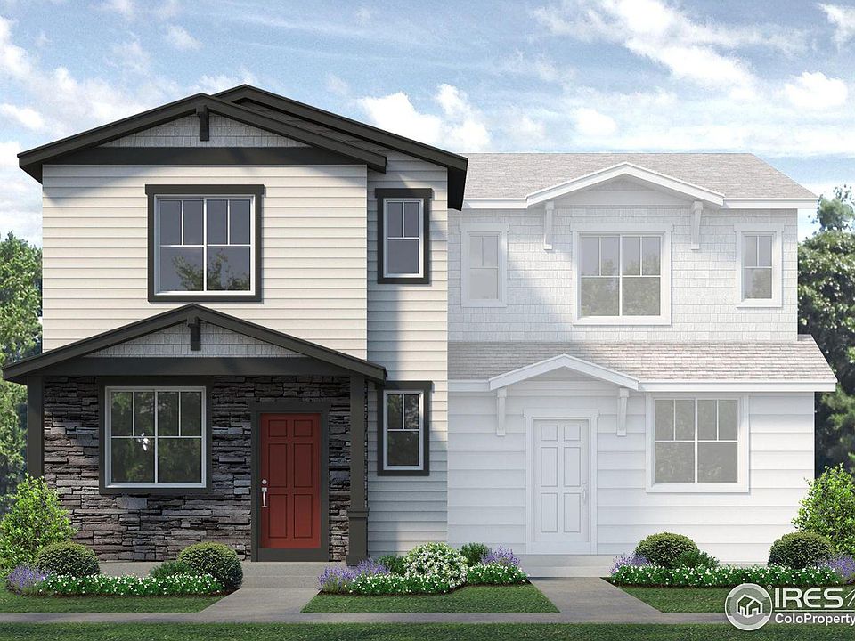 Welcome to this beautifully designed home, featuring a charming front porch that invites you to relax and enjoy the serene surroundings. Step inside to discover an open concept main level, where luxury vinyl plank (LVP) flooring flows seamlessly throughout, offering both style and durability. Your kitchen boasts a large granite island with beautiful 42" upper cabinets. The home faces East, allowing for an abundance of natural light to fill the space, creating a bright and welcoming atmosphere. The modern design and color scheme throughout the home exude sophistication and elegance. The primary bedroom is a true retreat, offering a spa-like en-suite with a walk-in shower for ultimate comfort. This home is energy-efficient, smart home enabled and is equipped with modern technology to enhance your living experience, ensuring convenience and sustainability. The community offers great amenities including a park and guest parking, while it's convenient location near I-25 and the newly developed Ledge Rock shopping center makes it easy to access everything you need. Don't miss the opportunity to make this stunning home yours!