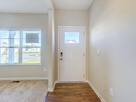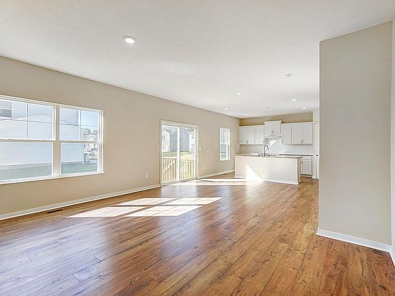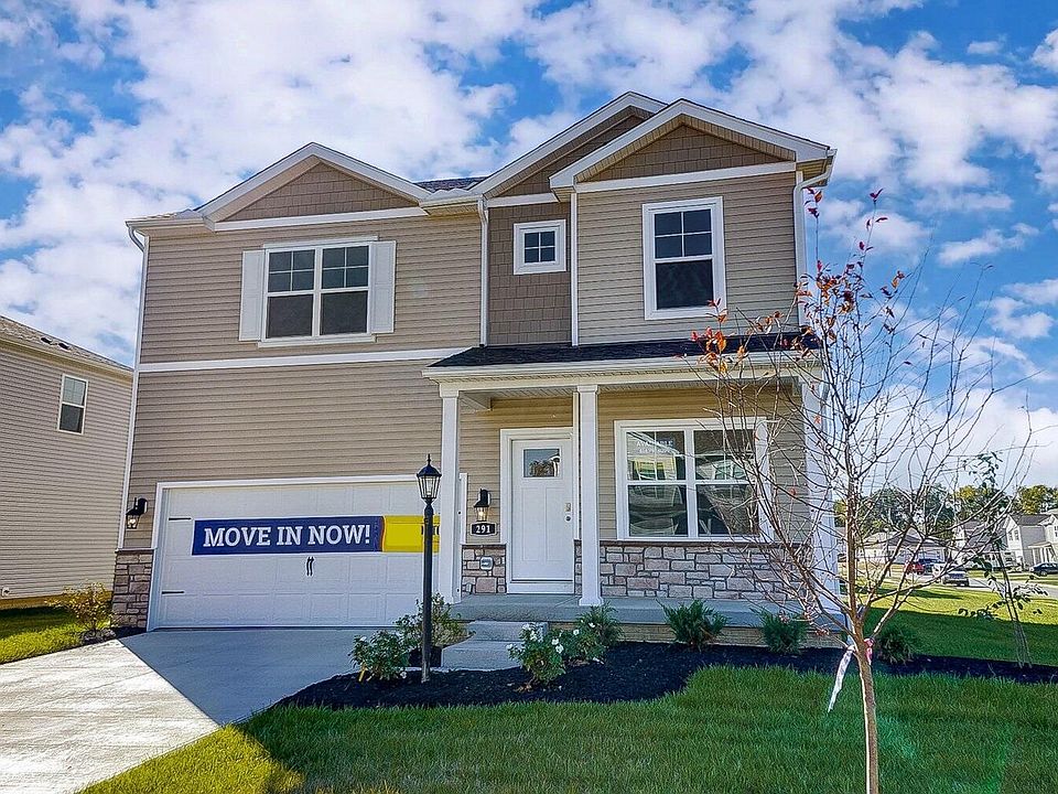 New construction in the beautiful Scioto Crossing community. This spacious floorplan with large great room featuring soaring 9 ft ceilings is open to a generous kitchen with ample storage and counter space. The huge island, overlooking the great room allows for extra seating and the granite counters, tile backsplash, trendy cabinet hardware and Revwood flooring make it a chef's dream. This home features a turnback staircase leading to 4 large bedrooms and 2nd floor laundry! The primary bedroom is your private getaway with en suite bathroom and huge walk-in closet. Additional stand out features include full basement (plumbed for bath), upg hard surface flooring throughout, stone accents on the exterior & a lovely concrete patio!