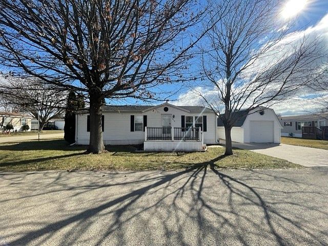 Welcome Home! 2 bedroom, 2 bath. Nice corner lot in Rock River Estates. Spacious living room. Handy kitchen with appliances (not warranted). Master bedroom with its own bath. Main bath has jetted tub, laundry with washer and dryer included plus huge storage closet. You'll love the screened gazebo with ceiling fan. Paver patio. 10x12 Trex front desk. 12'x16' finished, heated garage with loft storage. Double car driveway. $325 monthly lot rent includes water, sewer, and garbage pick up. Easy living!