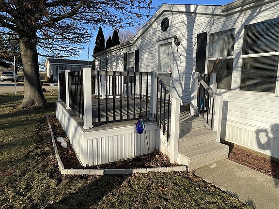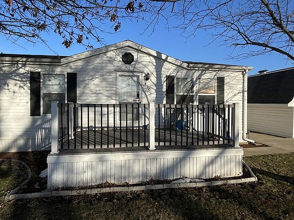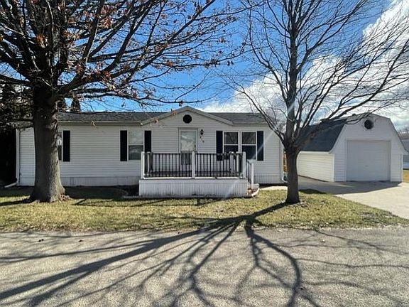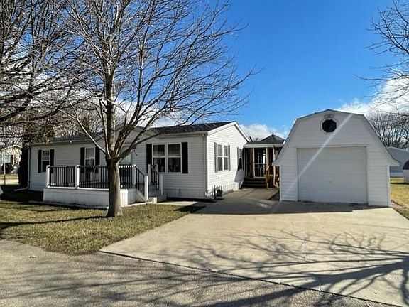 Welcome Home! 2 bedroom, 2 bath. Nice corner lot in Rock River Estates. Spacious living room. Handy kitchen with appliances (not warranted). Master bedroom with its own bath. Main bath has jetted tub, laundry with washer and dryer included plus huge storage closet. You'll love the screened gazebo with ceiling fan. Paver patio. 10x12 Trex front desk. 12'x16' finished, heated garage with loft storage. Double car driveway. $325 monthly lot rent includes water, sewer, and garbage pick up. Easy living!