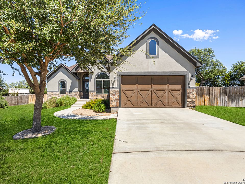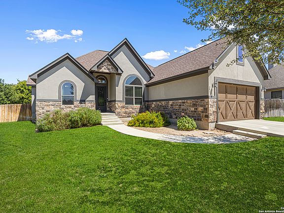 Charming Castroville Custom Home - Assumable VA Loan at 3.65%! Tucked away on a peaceful cul-de-sac, this 3-bedroom, 2-bath residence offers 2,328 sq. ft. of comfortable living. The open layout highlights granite countertops in both kitchen and baths, a thoughtfully designed extended breakfast area, and spacious rooms throughout. Step outside to enjoy a fully fenced backyard-perfect for gatherings or play. An oversized two-car garage provides added storage and convenience, making this home as practical as it is inviting.