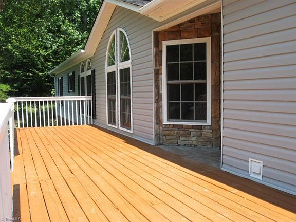 Great Value! 1 level home nestled in secluded cul-de-sac location. 24' x 16' deck overlooks private backyard. Massive 36' x 8' front porch. Open floor plan, perfect for entertaining! Living room features stunning stone (wood burning) fireplace. Unbelievable eat-in kitchen with island, stove, dishwasher, recessed lighting, pantry, new laminate flooring, & tons of cabinets. Garden tub, separate shower, & double vanity in Master Bath. Vinyl replacement windows throughout. Listed under tax value! Must See