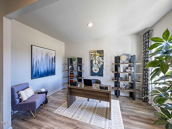 Brand new home on a large lot, just moments from Downtown Angier! Skip the morning commute with this home's versatile first floor flex space, perfect for an office. Enjoy weeknight meals made on the premium gas range, or grab a quick bite to eat from the massive walk-in pantry. A large kitchen island topped with white-quartz counters overlooks the open-concept living space, perfect for entertaining. Upstairs, the second-floor loft separates the secondary bedrooms from the opulent primary suite, featuring a spa-like tiled walk-in shower and massive walk-in closet. A dedicated laundry room helps simplify the chore. Perfectly located on the edge of downtown Angier, this location offers convenient access to NC-55 & NC-401, while boundless shopping, dining and entertainment options sit moments from your doorstep. Amenities include a dedicated playground and walking trails throughout. Plus, our homes come move-in ready with a washer, dryer, fridge and blinds all included to make move-in day a breeze!