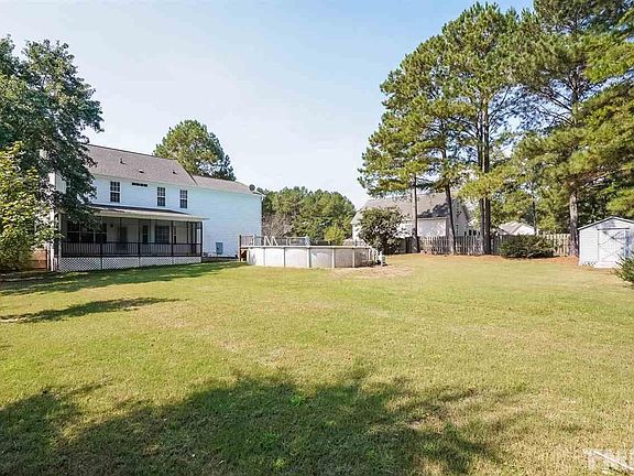 This Clayton two-story home offers an above ground pool, gas fireplace, kitchen island, master bathroom separate tub and shower with dual sinks, enclosed patio, a septic tank, and a two-car garage.