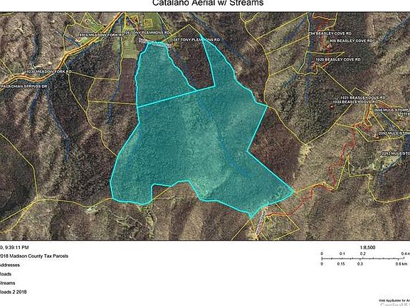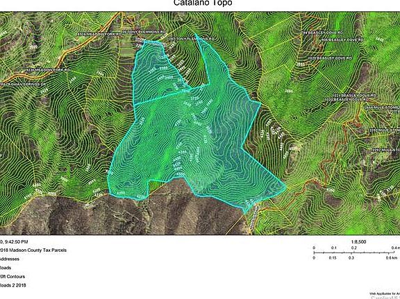 This 266-acre, two-parcel tract showcases panoramic views above 4,500' in elevation with over 5,000 linear feet of mountain streams. The property lies on the border of the Madison County/Haywood County line and is located less than 3 miles from Appalachian Scenic Trail attraction, Max Patch. The existing timber stand is aged and the property is peppered with fruit trees. There is potential for a water wheel to be constructed onsite for the Fall Branch stream in the eastern-most draw of the property. The seclusion and amenities offered by this exclusive location are considerable for an off-grid homestead or mountain retreat.