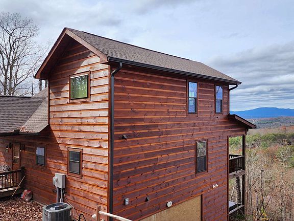 LONG RANGE Mountain Views! Beautiful like new cabin on 2.34 acres. 3 bedroom, 3 bath. Granite counter tops, SS appliances. Tiled showers. Jetted Tub. Flued Fireplace with Gas logs. Zoned C/H/A, Tankless Hot Water heater. Jaccuzi tub on terrace level. Game area and wet bar. Firepit area. Wrap around porch. Tastefully furnished. No restrictions No HOA. Can be used for STR. Tax records completely wrong. The address is correct confirmed with 911 addressing. Square footage is off tax records drawing.