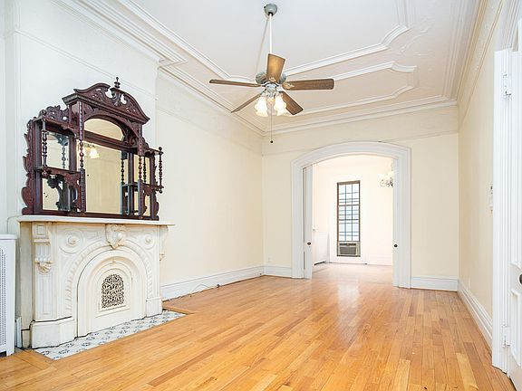 NO BROKER FEE SMALL DOGS/CATS OKAY. Heat included in this spacious 1400 sf brownstone. Unit has been updated with the following, new bathroom door, new back door, new tiles full bath, half bath new mirror/vanity, kitchen ceiling painted, hardwood floors installed in the smaller bedroom, living room painted. Full Basement and sole use of the Back Yard. 1 year lease