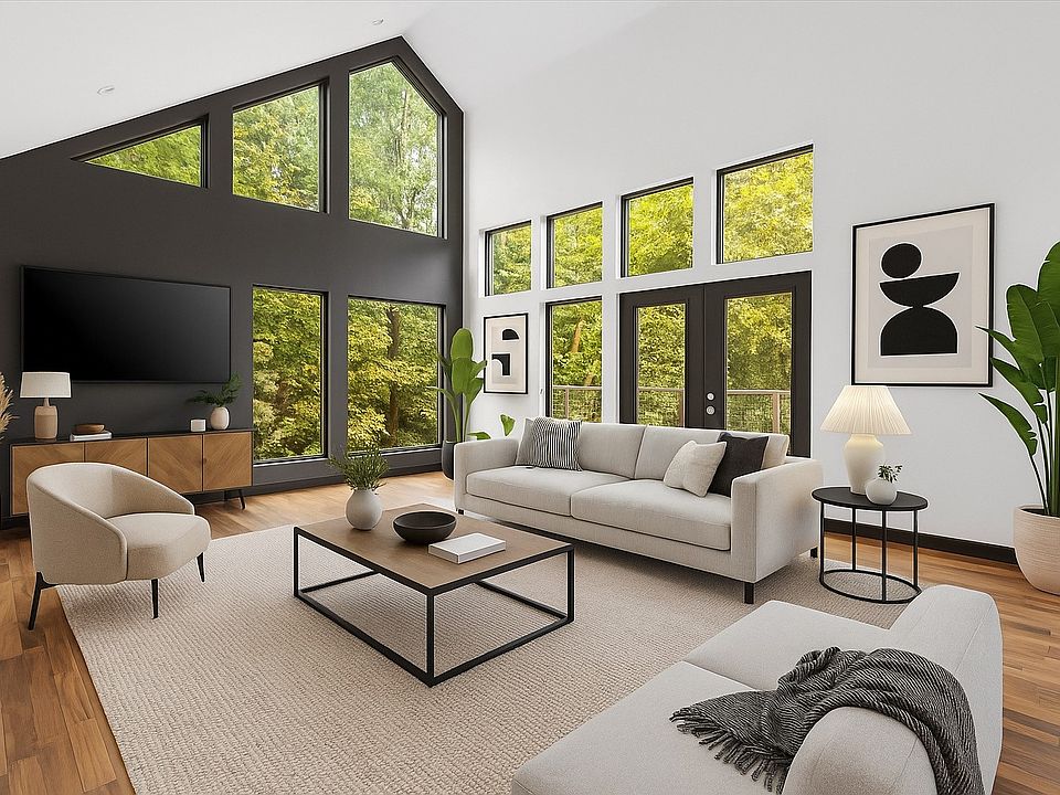 Sleek finishesContemporary stylePicturesque balconyWalls of windowsAcacia hardwood floorsTwo master suitesLiving in a treehouse