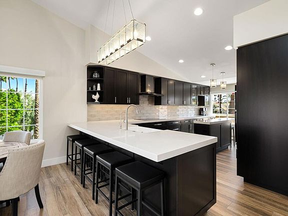 This absolutely beautifully renovated and meticulously maintained, 1814 sq foot, 3bd/2.5 baths, has been totally remodeled. Bright and airy, boasting high cathedral ceilings and an open floor plan ideal for entertaining, with its designer chefs dream kitchen, with hanging glass light fixtures, pearl quartz counter tops, custom soft close cabinetry, upgraded stainless appliances, gas range, built in oven, water filtration system, 3 new sun-filled bay windows, and a long built in center Island for prepping, dining, or use as a coffee or workstation. The large, comfy, and tastefully furnished, Living/Dining Room complete with stone facade fireplace and new Milgard Windows and slider doors opens out to your private patio with Spectacular Views of the Mountains and Fairway. Step into the light bright Primary Suite to enjoy even more commanding views of the mountains and fairways with a sliding glass door opening directly out to your back patio, overlooking a large swimming pool. The bright, and sunny, Ensuite Guest bed and Bath is beautifully appointed and situated down the hall on other side of the home allowing the 2 Primary Bedrooms space and privacy. The entire home is tiled in luxurious wood plank luxury flooring with bedrooms covered in soft neutral creme tone Berber Carpeting consistent with the relaxing palette and overall vibe of this warm clean, calm & relaxing home. This home is truly the very best of Resort Living with building and Grounds Maintenance, Tennis, Pickleball, Full Fitness Center, 29+ Pools & Spas, Cable, Wi-Fi, 24hr Gate Guarded, Roving Security and more, included in your HOA Dues! Golf on Desert Falls Country Clubs 18-hole Scottish Championship Links Course is on a pay as you play basis or choose to opt in on a membership. Desert Falls Country Club has it all! Within walking distance to restaurants & shopping, and just a few miles drive to Acrisure Arena, McCallum Theatre and El Paseo with upscale shopping, Designer Boutiques, Galleries and Fine Dining. This uniquely, upgraded home with its multitude of upgrades is move in ready and not to be missed! Short Term leasing currently allowed. Call today for your private tour!