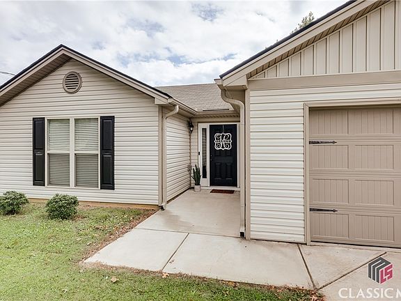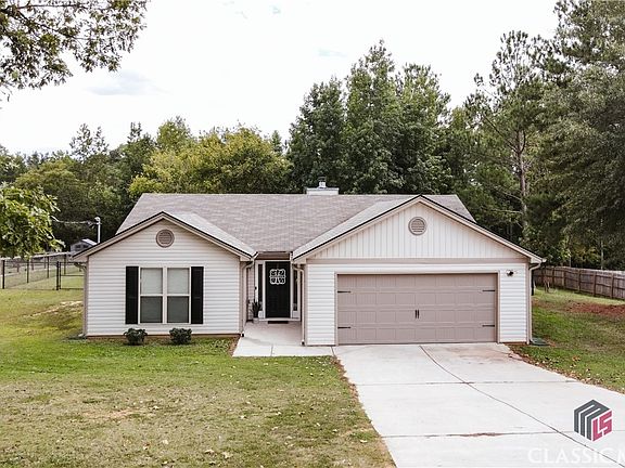 Easy single story living downtown Colbert! This 3 bedroom, 2 bath ranch on 1.43 acres built in 2018 has been lovingly maintained and improved. The foyer welcomes you in with easy maintenance LVP flooring. You will find 2 bedrooms and a full both tucked to the side along with a large coat closet and a linen closet. The Primary Suite is off of the Great Room and has a large walk-in closet and an ensuite bathroom with walk-in shower and soaking tub. A cozy fireplace is featured in the Great Room which flows easily into the eat-in Kitchen. Features in the kitchen include LVP flooring, new light fixture over the dining area, newly painted cabinets, black and stainless appliances, pantry space, and laundry room. Outside, the patio provides a place to relax and watch the happenings in the fenced back yard. Only about half of the lot is cleared and you have lush trees in the back for privacy and nature! All new interior paint, great closet space, large lot, wonderful location close to shopping/schools/Athens, and more! This home is ready for you to walk in, put your things down, and put your feet up!