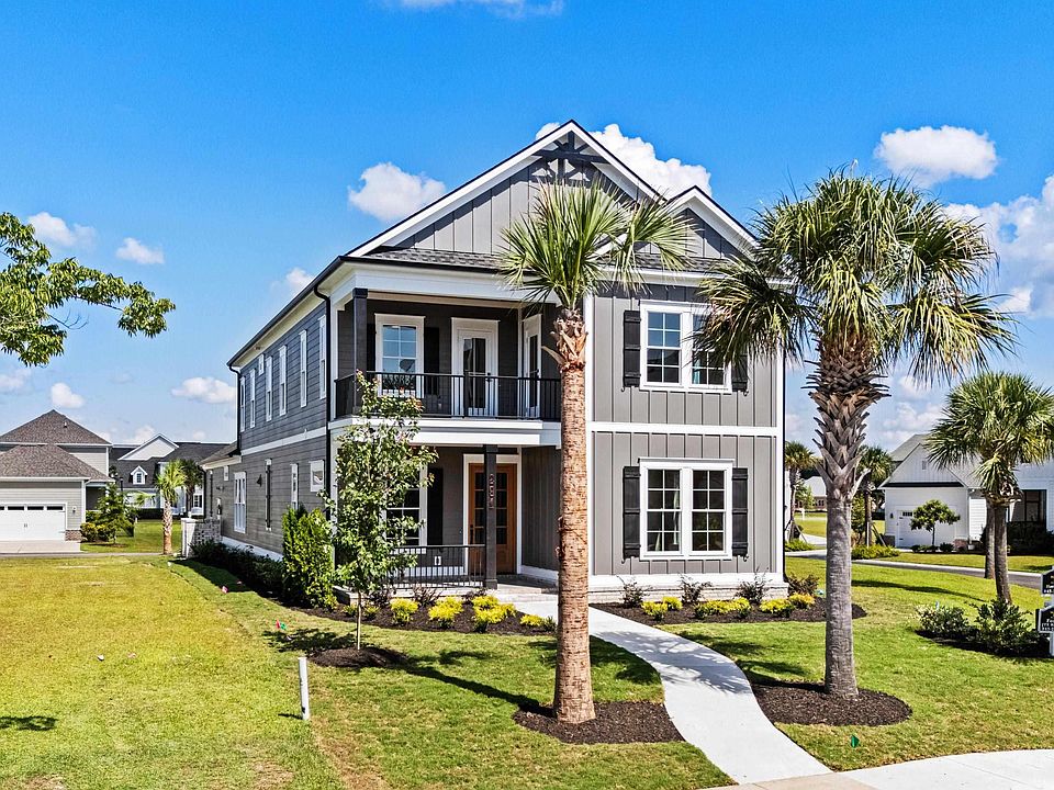 Welcome to 291 W Palms Drive, Myrtle Beach, SC 29579, located in the prestigious Waterway Palms Plantation. This exceptional builder spec home boasts numerous upgraded features, setting it apart from the typical spec home. Step into the heart of the home, the kitchen, where you'll find cabinets extending to the ceiling, a large work island, double oven, custom range hood, and a walk-in pantry. The open floor plan is accentuated by craftsman molding throughout, with stunning accent walls and staggered beam and tray ceilings. The first-floor master suite is a true retreat with his and hers closets and a first-class master bathroom featuring a huge walk-in shower. Additionally, the first floor includes a separate laundry room, a dining room with a pass-through window to an amazing three-season Ezy Breeze porch equipped with a fireplace and built-in cabinets. The living room, designed for comfort and entertainment, offers a fireplace, built-ins, and a wet bar. There's also a versatile flex room perfect for a home gym or office. The exterior features a welcoming front porch and a two full-bay garage with a third bay, ideal for a golf cart, sports car, or motorcycle. The mudroom, conveniently located off the laundry room, includes a cubby drop zone for shoes, bags, and jackets. Upstairs, you'll find four generously sized bedrooms, a flex room that can serve as an office, gym, or even a sixth bedroom, two full bathrooms, a loft, a walk-in storage area, and a balcony. Waterway Palms Plantation offers first-class amenities, including a resort-style swimming pool, a community boat launch into the Intracoastal Waterway, boat storage, and much more. Don't miss the chance to own this spectacular home with unparalleled features and amenities.