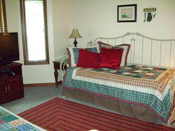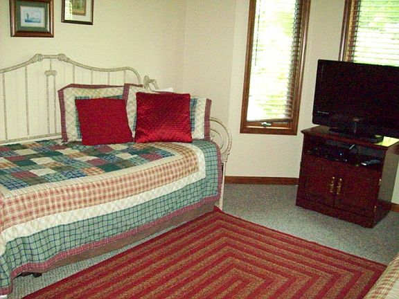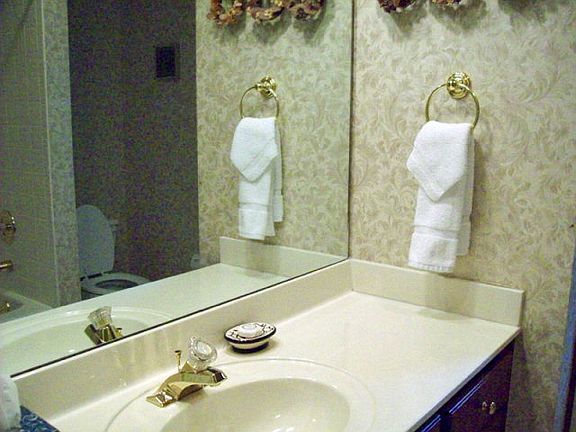 This is the location everyone wants. Gorgeous stone bridge, rushing stream & trees everywhere you look. Upstairs end unit, private spot on the end of the street. Unusual to have so much available lawn space in a condo. Lovely furnishings, 2 master suites both have whirlpool tubs, double vanities and showers.