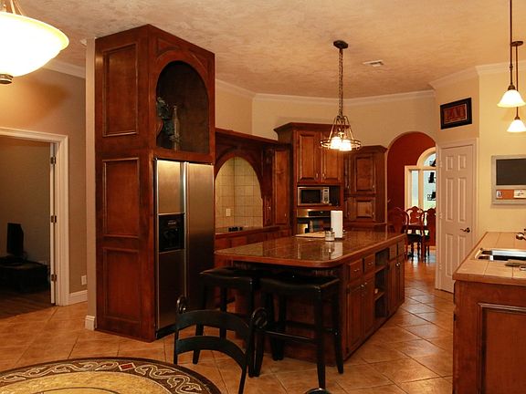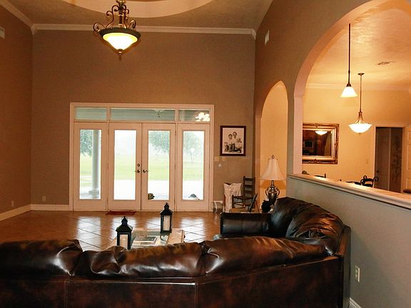 Elegant French Country home situated on 6.02 acres w/ 3500+ sqft of living space! Inside you'll find 15ft tray and triple tray ceilings trimmed in double stacked crown molding, ceramic tile and wood floor throughout (NO CARPET), beautiful custom built-ins, living room w/ separate den/game-room that features custom bookcases and fireplace, a laundry room large enough to handle an army, as well as a large, lavish, master suite and master bath fit for a king and walk-in closet larger than most common bedrooms. Outside you'll find a large yard, landscaping, great neighbors and elegant surroundings, large back porch for hosting, as well as concerete patio w/ plumbing for an outdoor kitchen!