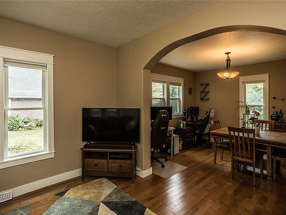 Looking for charm and character? Look no further! This 1.5 story home greets you at the front door with a sweeping view of the living room, dining room and open kitchen. Hardwood floors and lots of white vinyl windows make this a space you'll want to stay in! The updated kitchen has newer cabinets and countertops along with stainless steel appliances is open to the dining area. The main floor also includes the master bedroom suite adjacent to the 3/4 bathroom. The second floor offers two bedrooms, a full bath, plus a bonus flex area. Outdoors you will love the oversized two car garage, patio sitting area right off the kitchen, flat back yard, and tree line providing tons of privacy! Two Stall Garage added in 2016 and new roof in 2021. All information obtained from Seller and public records.