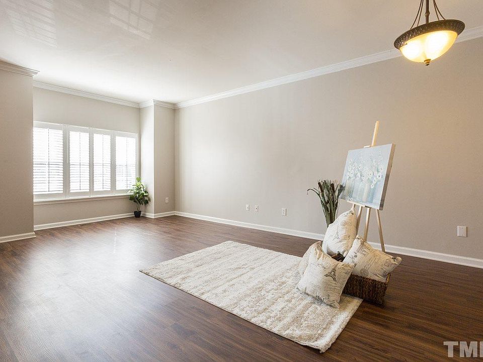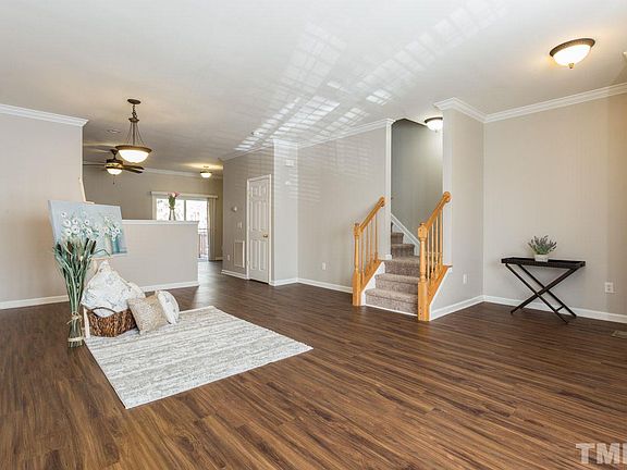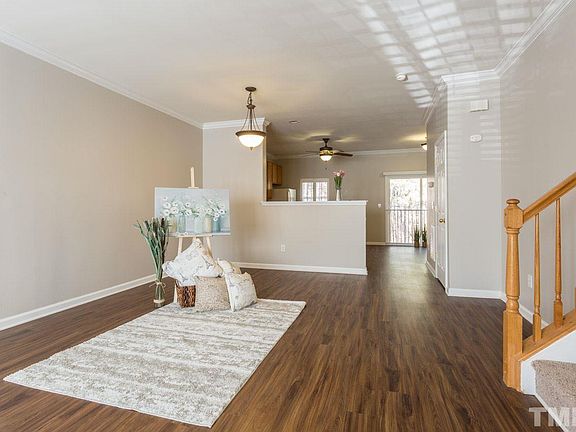 Don't miss this stunning, light filled town home! You won't find this kind of quality and space anywhere in the Triangle at this price! Extensive mouldings throughout, upgraded light fixtures, quality ceiling fans in all bedrooms and family room. Brand new flooring and fresh paint throughout. HOA includes pool, clubhouse, fitness center & exterior maintenance! Private, wooded backyard. Minutes from NC State & Lake Johnson Park.